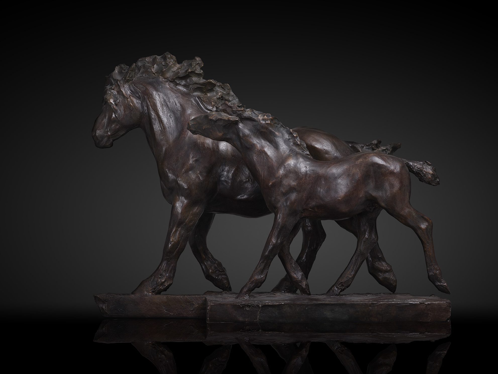 Jument et son poulain, plâtre, 52x26x42 cm