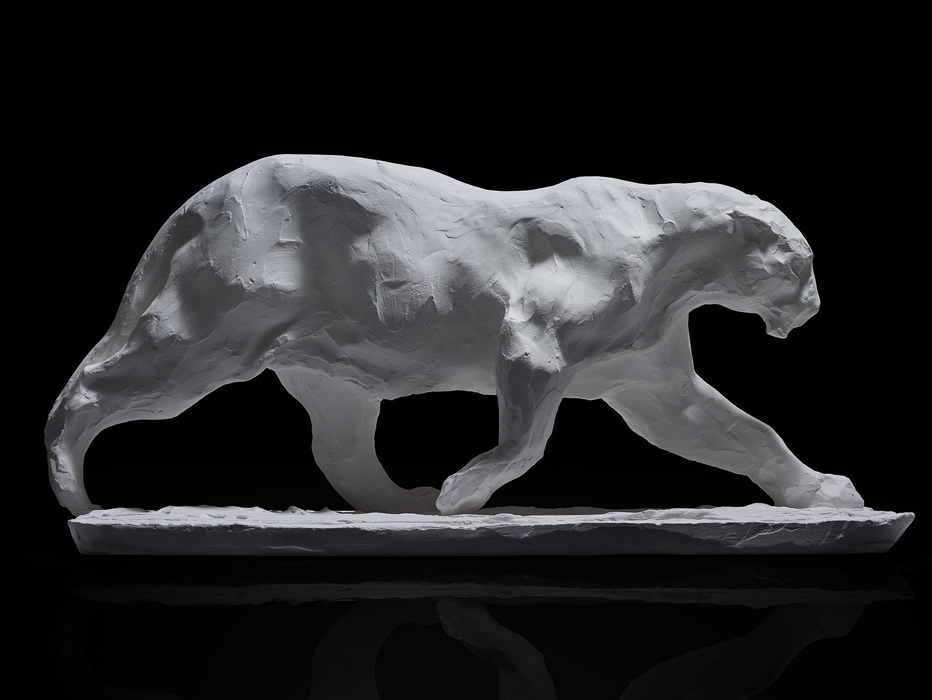Panthère marchant, plâtre, 24x27x48 cm
